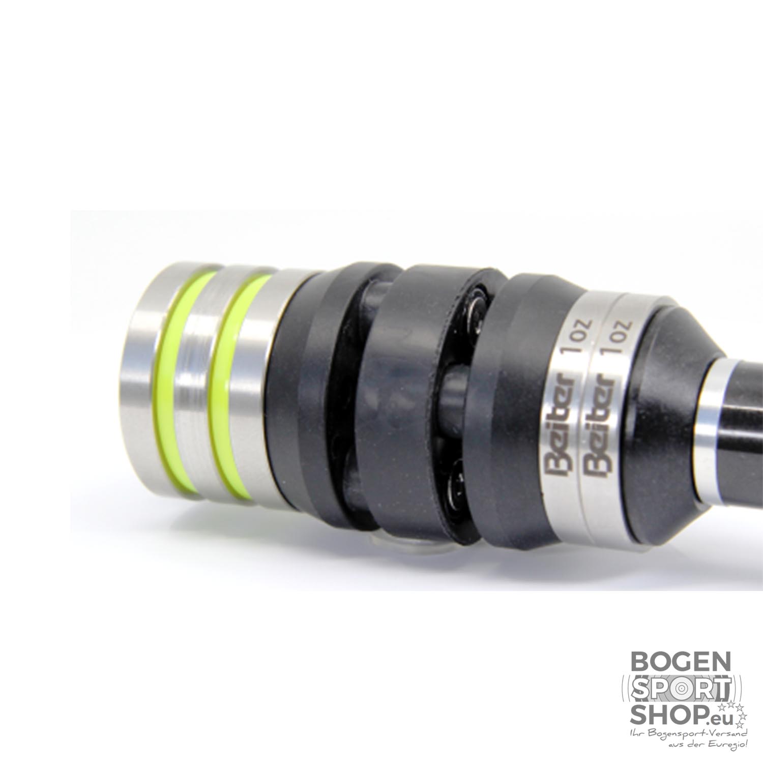 Während der JVD Open / Kings of Archery am 17. und 18. November 2018 hat Beiter nach längerer Zeit mal wieder ein neues Produkt vorgestellt, und zwar einen Dämpfer für Stabilisationssysteme. Eigentlich ist es eher ein Dämpfer-System, denn dazu gehören auch Gewichte, Adapter für alle Typen von Stabis und farbige Kunststoffscheiben (wäre sonst auch nicht Beiter), mit dem man seinen Dämpfer individuell gestalten kann.