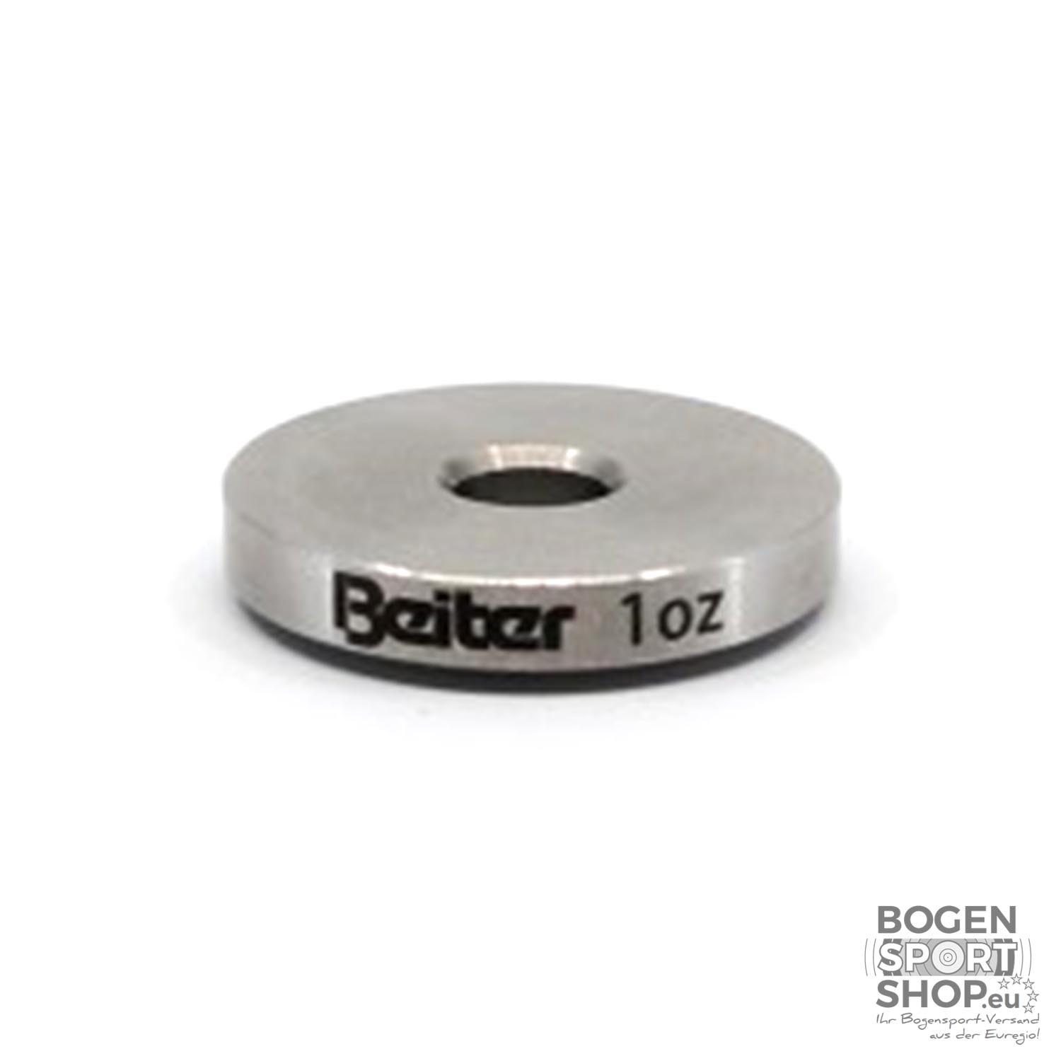 Die passenden Gewichte kommen in 1 oder 3 Unzen (28 g oder 84 g) und weisen kein Gewinde auf, sondern werden auf eine 5/16 Zoll Gewindestange aufgezogen: