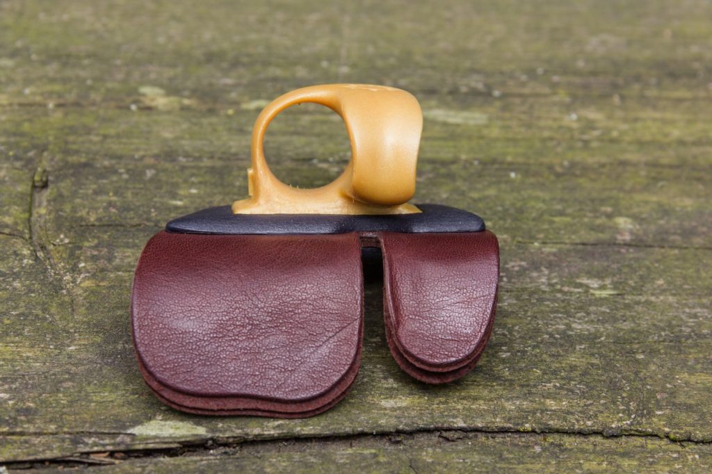 Wer das Tab für kurze Zeit anhat bemerkt es kaum mehr. Der Fingertrenner aus Urethan besitzt eine neutrale Temperatur und auch die drei Schichten Känguruleder mit der Grundplatte passen sich geschmeidig, ja sogar organisch der Hand an. Und das Tab ist ein Fliegengewicht, das ohne jeglichen Ecken und Kanten mit einer leichten Ankerplatte direkt an das Kinn gezogen wird. So ist eine Verletzungsgefahr unmöglich.