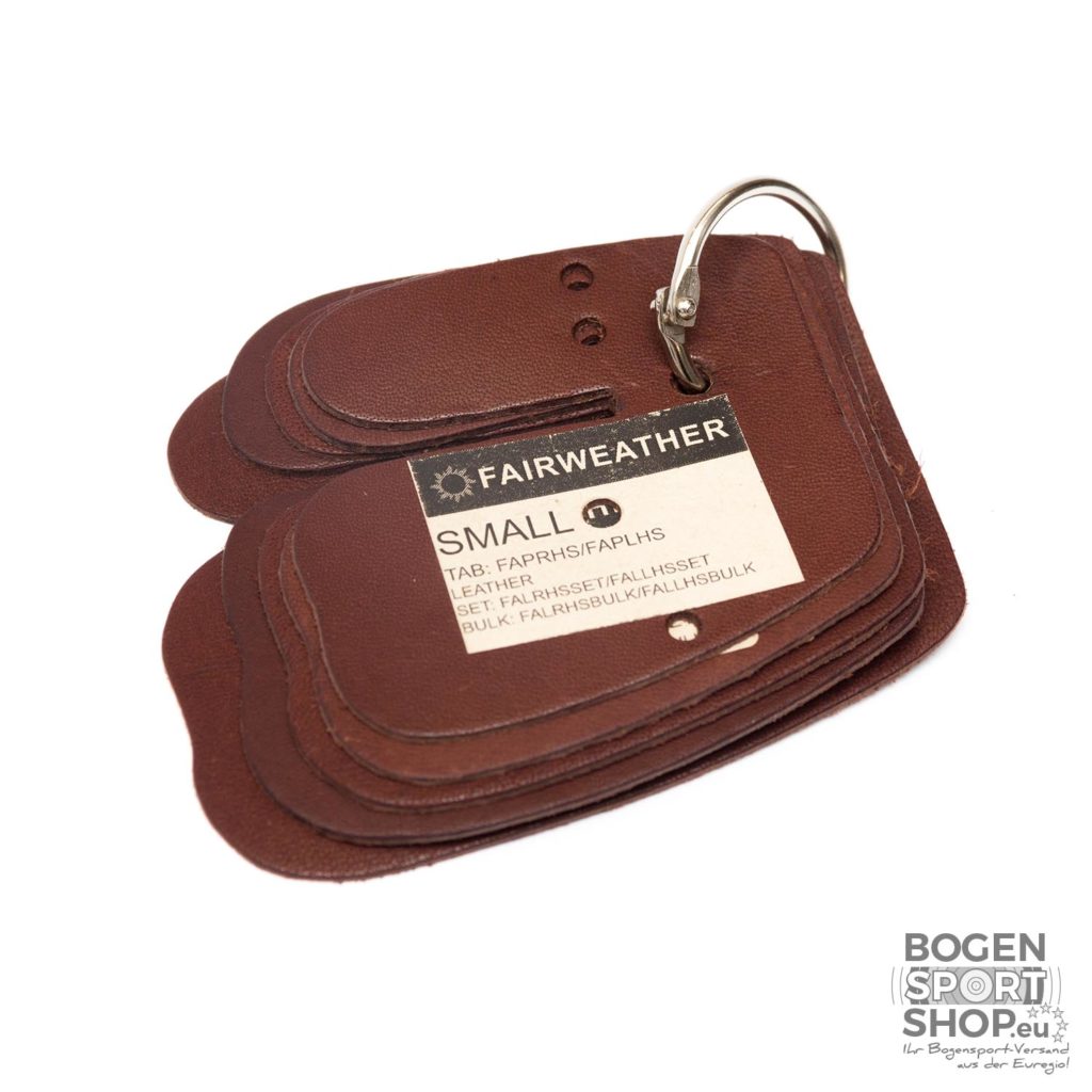 Als ausgebildeter Kunstschmied und mit einer überaus erfolgreichen Bogensportkarriere kann dem fünfzigjährigen aktuellen Nationaltrainer der Australischen Mannschaft kaum jemand an Wissen und Erfahrung das Wasser reichen. Aber Fairweather hatte schon als Schütze seinen eigenen Kopf, und das merkt man dem Tab an. Das Design ist so simpel, dass es schon beängstigend ist. Allein eine einzige Schraube hält den Fingertrenner, die Grundplatte und das Leder, ja das ganze Tab zusammen. Eine höhenverstellbare Ankerplatte, Erweiterung der Handflächenstütze oder Haken für den kleinen Finger sucht man vergeblich. Doch verfolgt Fairweather hier auch nicht das Konzept einer hochkomplexen einstellbaren Maschine. Vielmehr steht für ihn die natürliche Verbindung von Schützen und Bogen im Vordergrund.