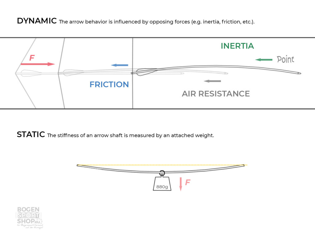 Therefore, the term „dynamic spine“ is often used. However, confusion is almost pre-programmed, because it suggests a different, measured value, which is why we want to speak of „dynamic arrow behavior“ in this article. We would like to use the word „spine“ only for the value determined statically on the apparatus.