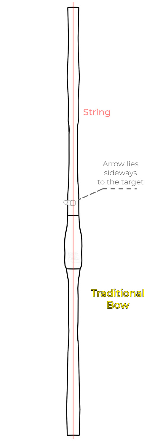 In primitive bows without a sight window, paradoxically (see also Archer’s Paradox), the arrow first has to wind its way around the grip (the starting position of the arrow is sideways to the target); here an accurate spine is very crucial for consistent results, because the arrow has to make ‚a bow‘ around the bow as correctly as possible.